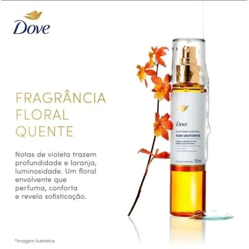 O Dove Óleo Sérum Corporal Tom Uniforme 150ml é um hidratante corporal em spray que proporciona hidratação leve e um acabamento iluminado à pele. Com uma fórmula inovadora, ele é facilmente absorvido, tornando-se a escolha ideal para quem busca praticidade no dia a dia. Além disso, o produto é especialmente desenvolvido para reduzir a aparência de manchas escuras, deixando a pele com um tom mais uniforme e um brilho saudável.