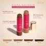 Com textura cremosa e confortável, acabamento semi-matte e efeito aveludado, ele desliza suavemente pela pele, permitindo criar desde contornos suaves até uma definição marcante.